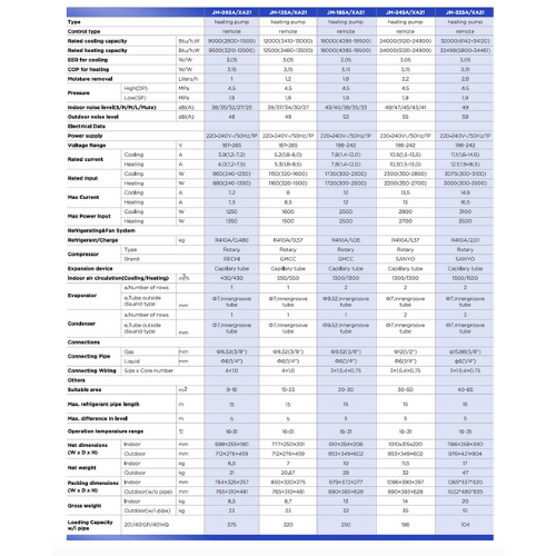 - Uses R410A refrigerant